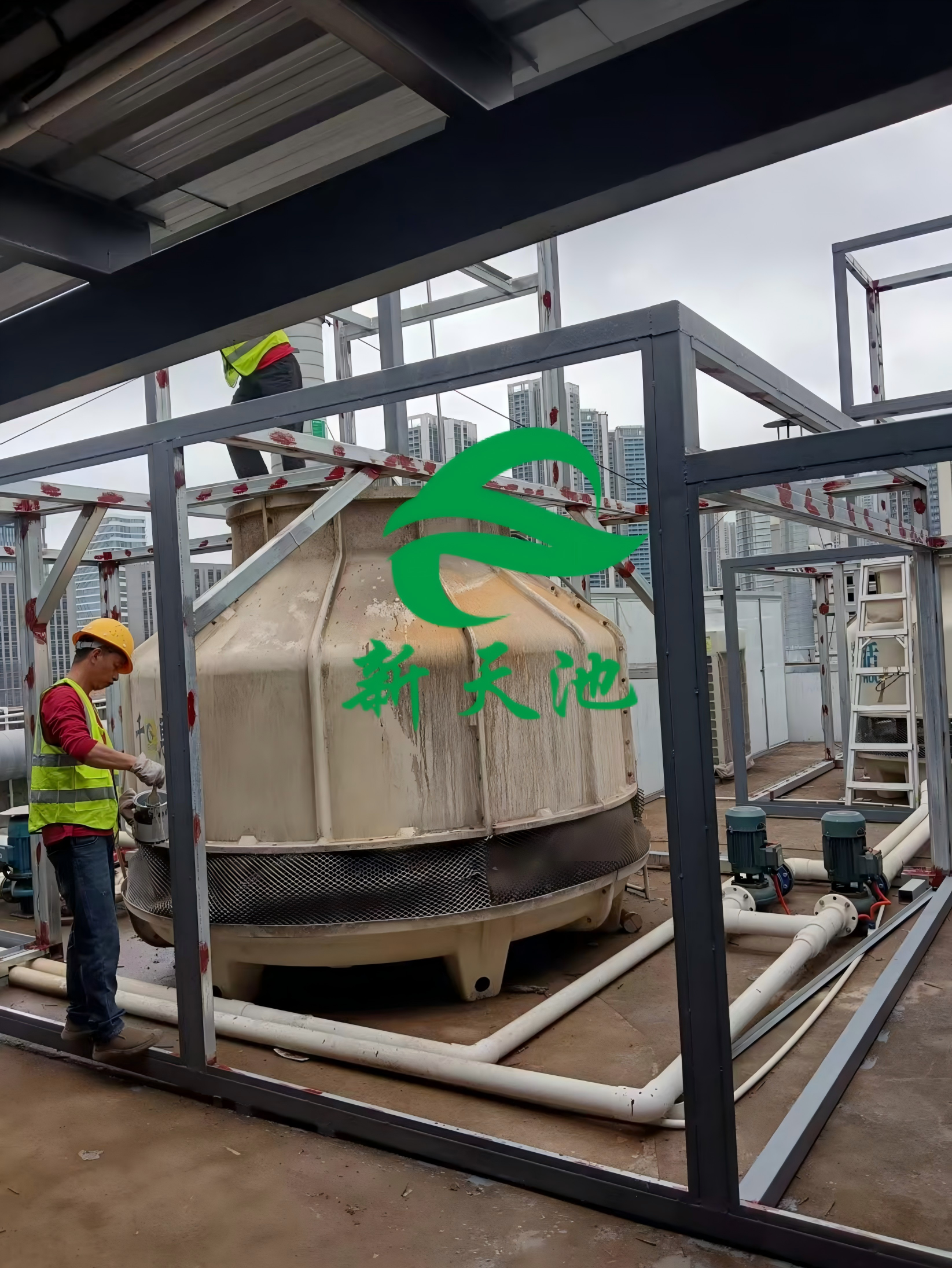 项目概况:冷却塔降噪项目位于深圳市光明区,该公司是一家专注于生产及销售高精密仪器连接器的企业。该公司在楼顶处安装有2台冷却塔设备,这些设备在运行时会产生强烈的噪音。这些噪音通过空气传播的形式向四周传播,影响到周边居民正常生活和作息。因此委托我们新天池环保进行降噪治理